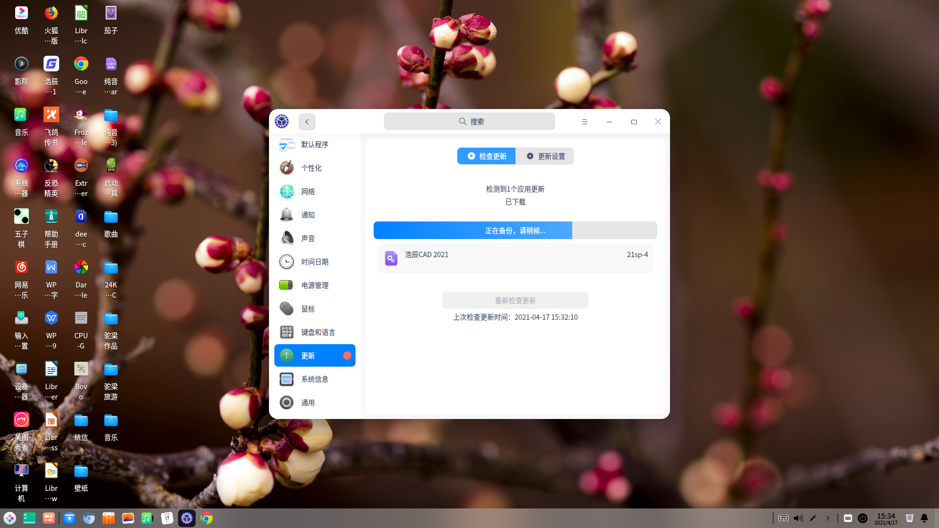 刚刚我的一台deepin20.2的机器提示浩辰CAD有更新
