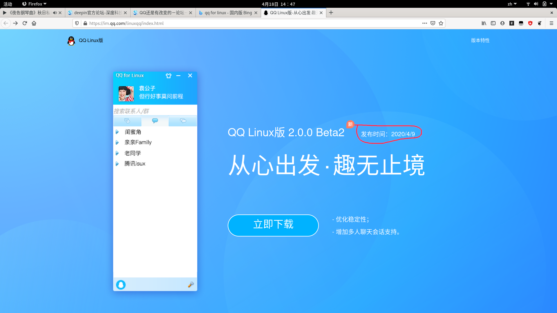 今天想看看linux qq有没有更新,结果还真更新了,现在应该是第三版了吧
