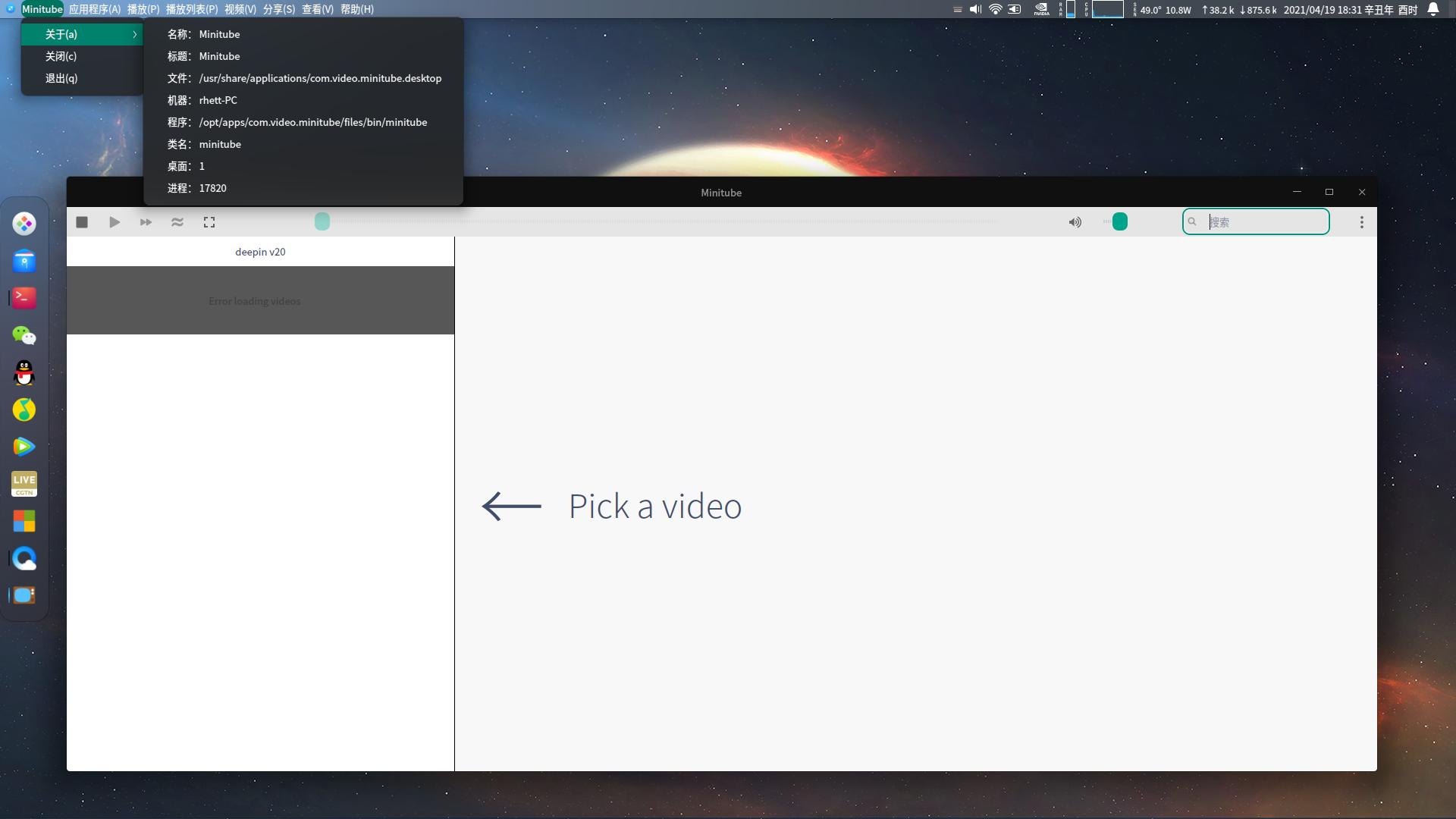 通过启动器,minitube加载不出列表,而终端和utools却可以。找了好久原因。