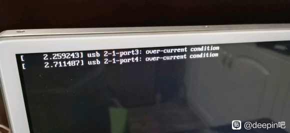 是啊,我查了,英文提示是”USB 端口电流过载”,但是为什么就是会卡在这里。但是笔记本电脑不会,看来Deepin对台式电脑的适配不友好啊。