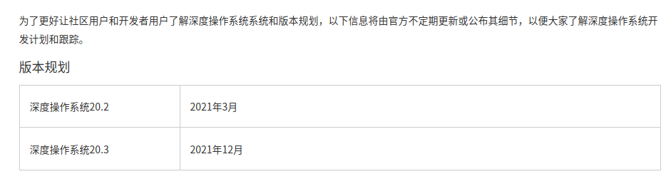 deepin 深度 20.3 版本的规划时间由 2021 年 6 月调整为 2021 年 12 月。比一开始的规划延迟了 6 个月。