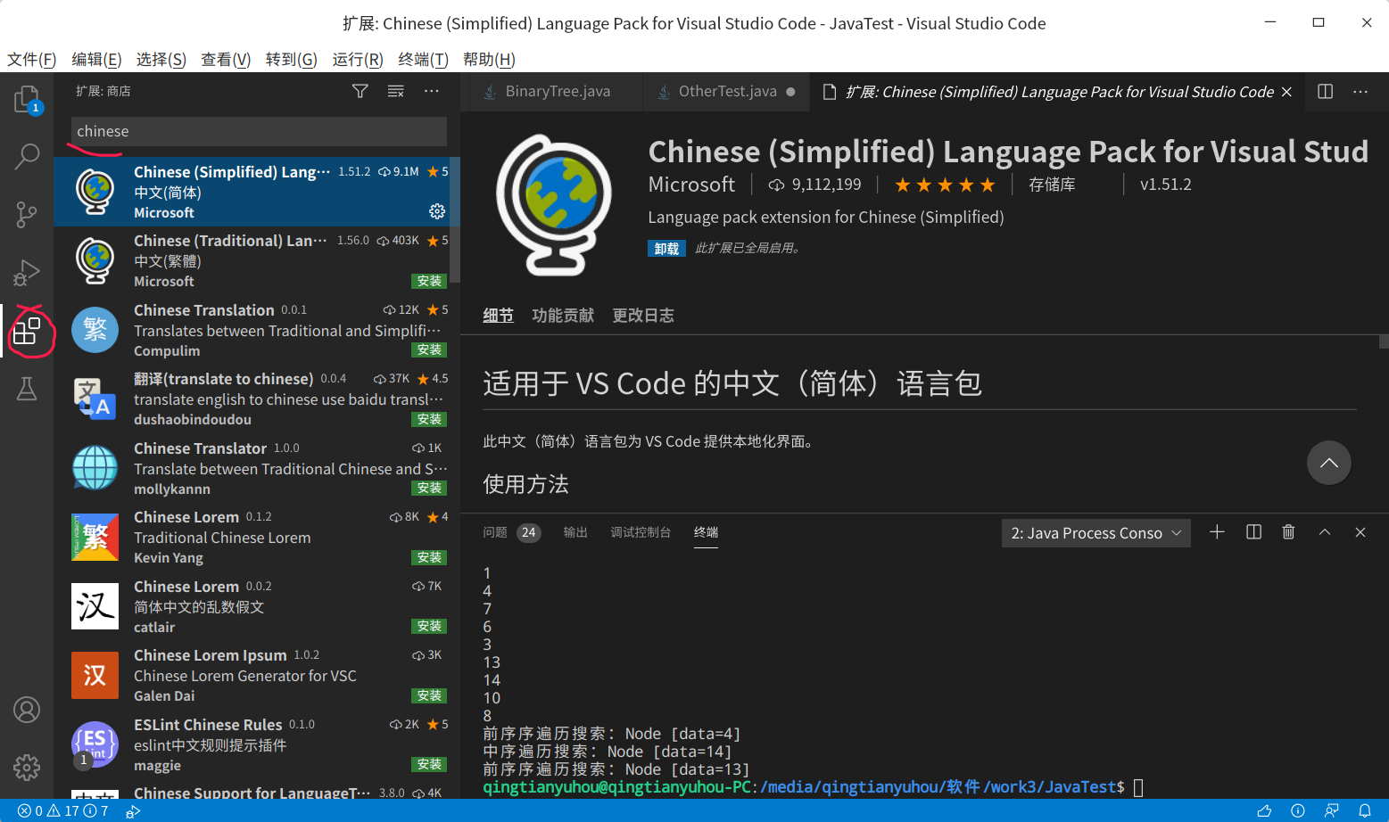 vscode也有中文,在插件界面中搜索chinese安装第一个就可以了。用过idea、myeclipse、eclipse,还是vscode好点,主要开源免费,而且能开发很多语言,pycharm太局限了,不过对新手是好。