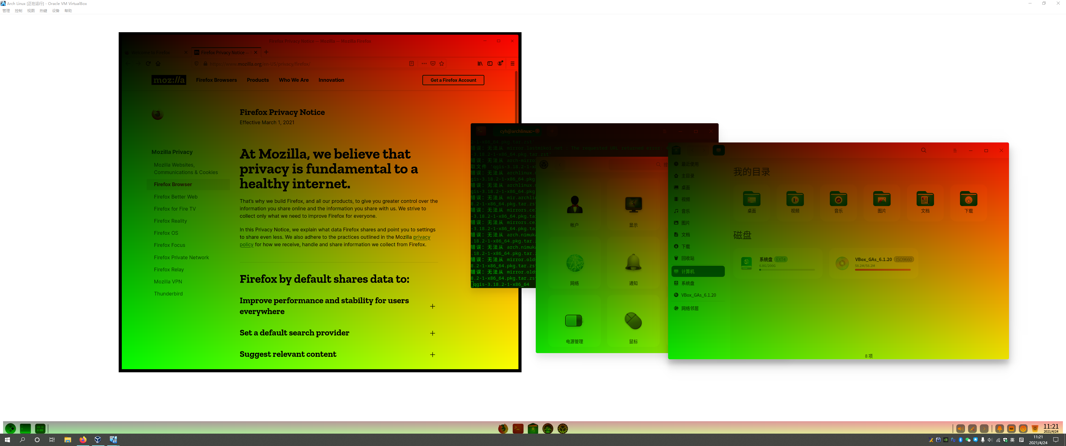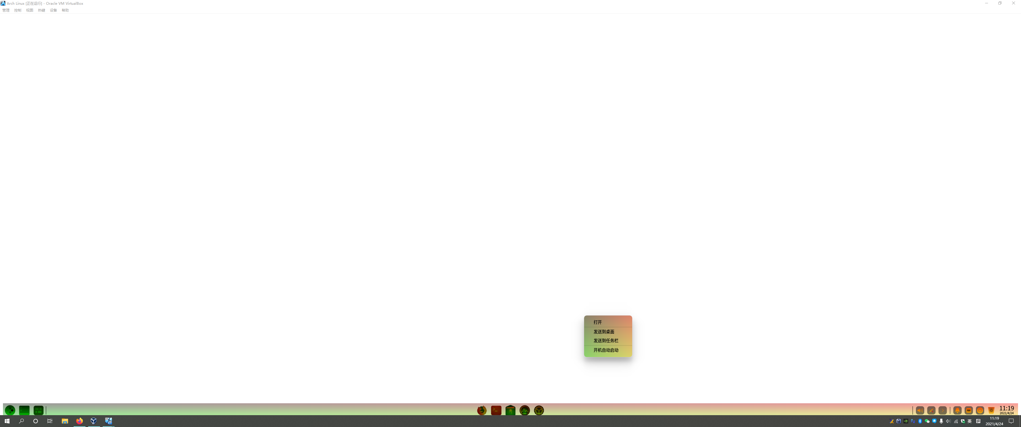 在Virtualbox里体验的,Arch Linux+Deepin桌面环境,4G内存应该是中规中矩?128M显存,是能设置的最大的了