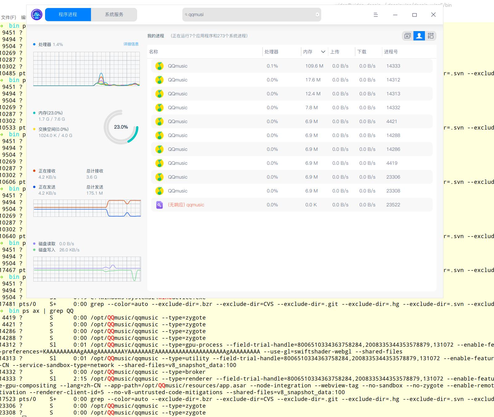 我的qqmusic早就关闭了,但是后台却又非常多的线程残留,感觉不正常,qqmusic版本1.0.8