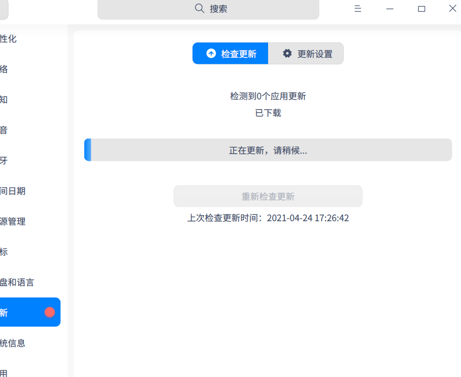 一点击系统更新就卡在这里 进度条都不走,关机也无法关闭,提示进程在运行,镜像源选择的是智能匹配