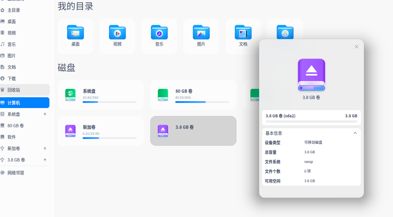 2021-04-27 02:43 不要提前分区,直接在安装时分区,提前分区的,安装的要挂载的,不然识别不了。你这个3.8g没有用,可以格式化当平常的分区用。可以在终端中重新设置交换分区,论坛有贴子。