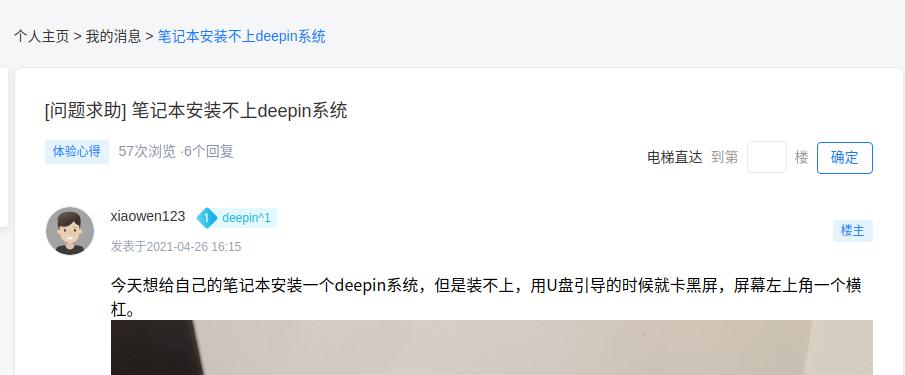 今天想给自己的笔记本安装一个deepin系统,但是装不上,用U盘引导的时候就卡黑屏,屏幕左上角一个横杠。