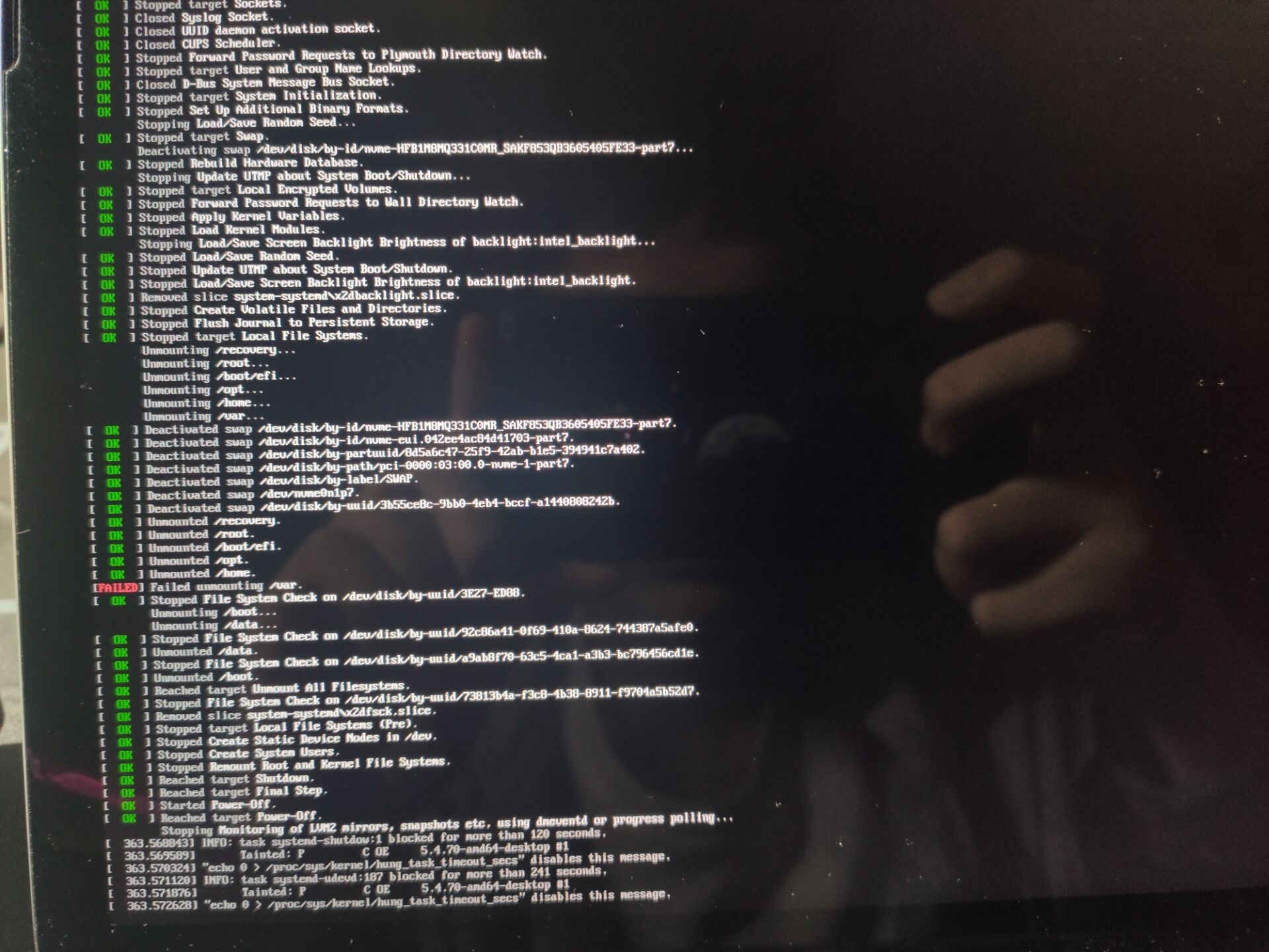 系统安装完成后,关机卡死在界面,强制断电重启后系统进不去。