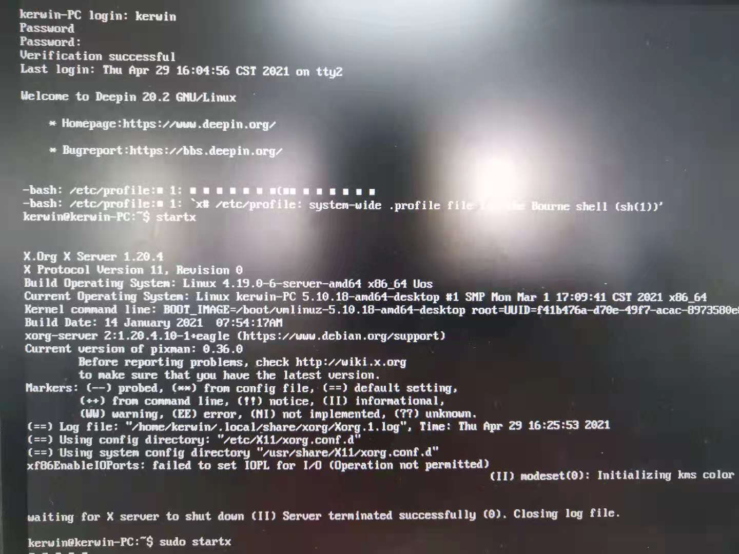 Ctrl+Alt+F2 可以进入命令行界面,执行startx仍无法启动界面。