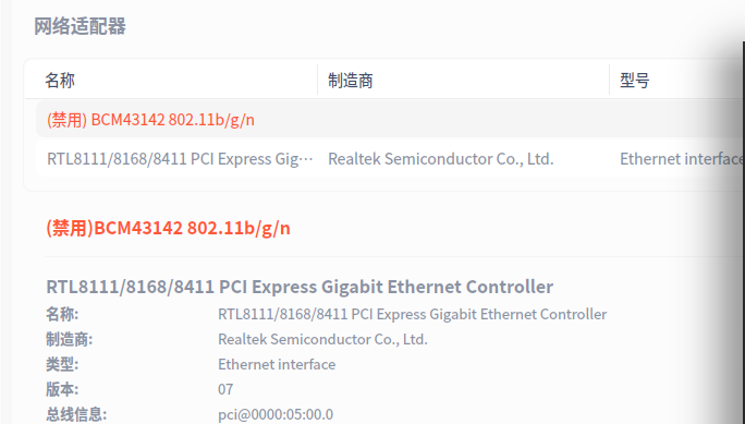 如图,网卡被禁用,无法启用。之前20.1版本就没有任何问题