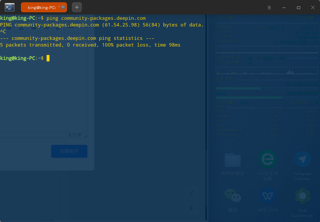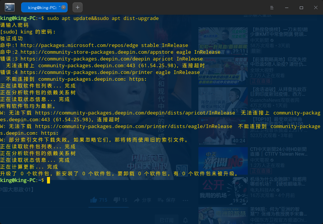 community-packages.deepin.com:443 (61.54.25.98),连接超时