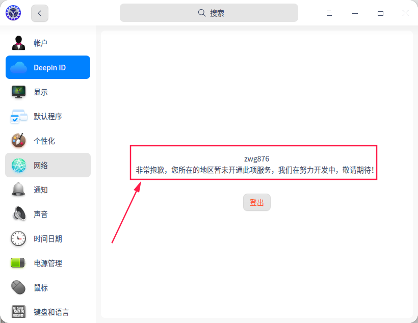 在设置里面有一个DEEPIN ID,使用账号登陆上去提示未开通服务。