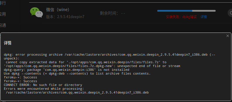 问下为什么我没法安装QQ、微信什么的无法安装啊QAQ(输入法可以),显示dpkg错误之类的