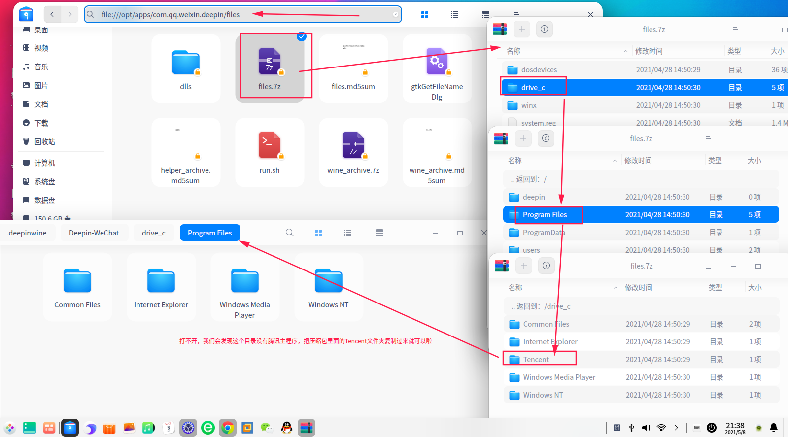 20210511 今天收到升级信息,显示是内核升级,大概70-80MB,升级后,QQ打不开, QQ在相关目录下,查看没有解包不完整, 删除在点,依旧解包不完整,无奈手动解包,可是解包后,运行QQ,会被他删除