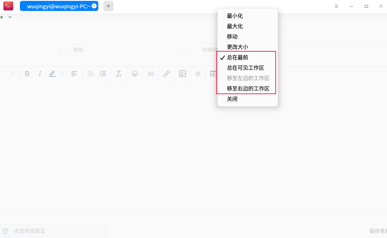 最近发现有一个快捷键很好用,就是设置当前窗口 总在最前 ,这个快捷键在我想从另一个窗口复制东西到当前窗口,但是两个窗口又有部分重叠的时候很好用,另外两个经常用的是把当前窗口 移至左边的工作区 或者 移至右边的工作区,这些快捷键在kde中都是有的,希望deepin也能加上。