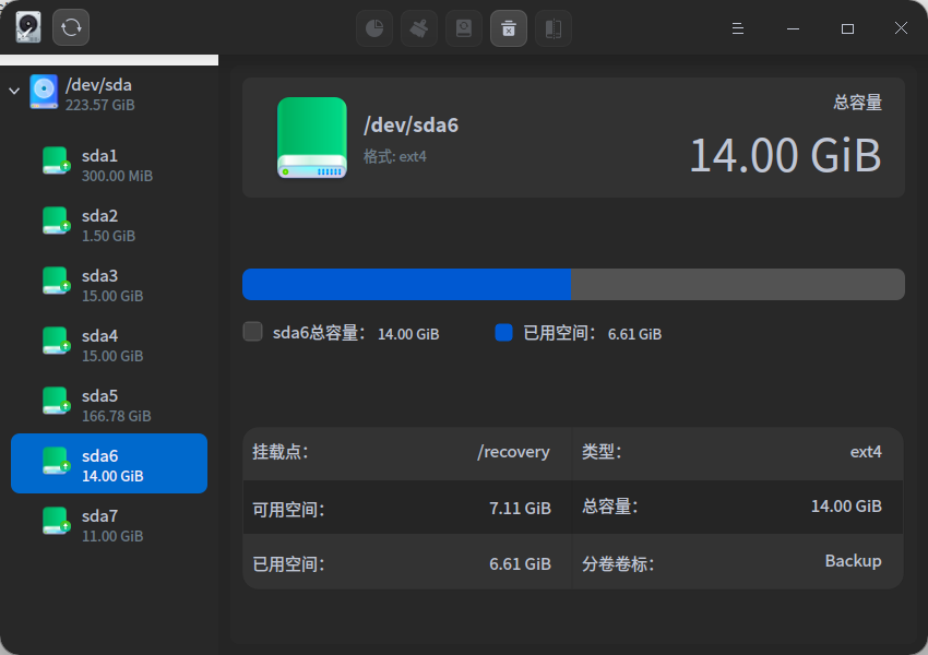 然后就是,全盘安装的时候,控制中心-系统信息 里有个备份还原功能是不是和这两个分区有关,如果手动安全怎么实现这个备份还原功能?