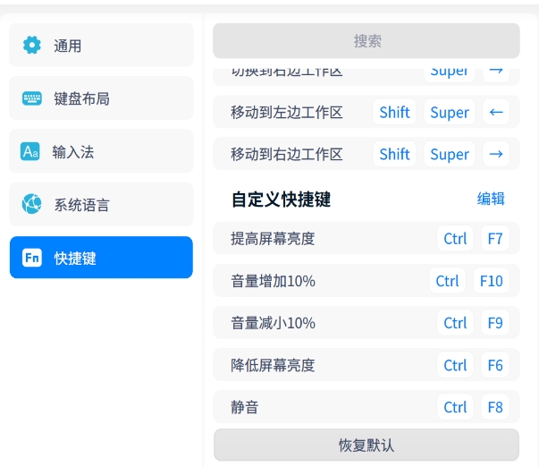 我是用的chromebook pixel2013安装的deepin20.2.1,安装好以后,最上面的一排功能按键变成了f1~f10的按键,通过系统的自定义快捷方式,恢复了屏幕亮调节和音量调节等功能;但是由于修改的东西比较多,想知道修改好的自定义快捷方式怎么备份?或者相关的文件存在哪儿了,我自己备份起来。不然以后重新安装系统后又要重新设置一遍,嫌麻烦,请各位大神指导!