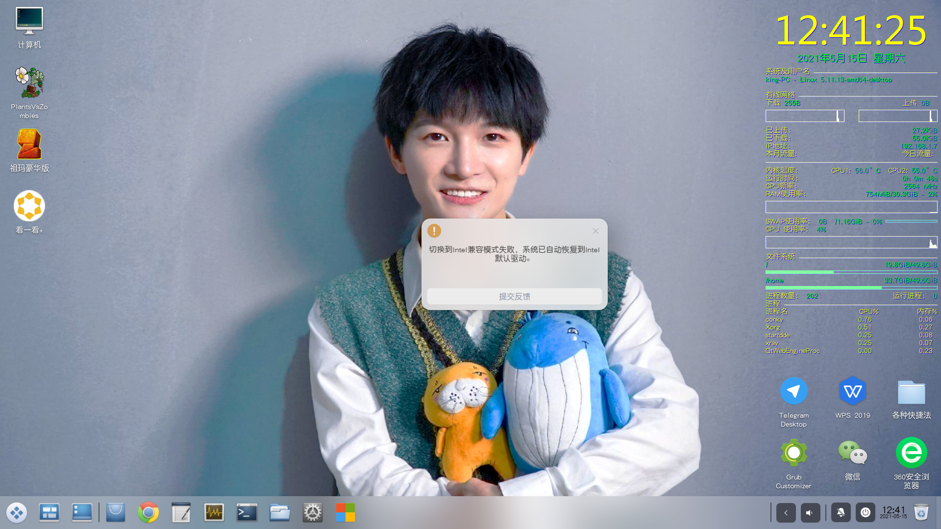 我cpu是i3 6100,一直用核显hd530。 之前20.2的时候还能够切换默认模式Intel加速模式。