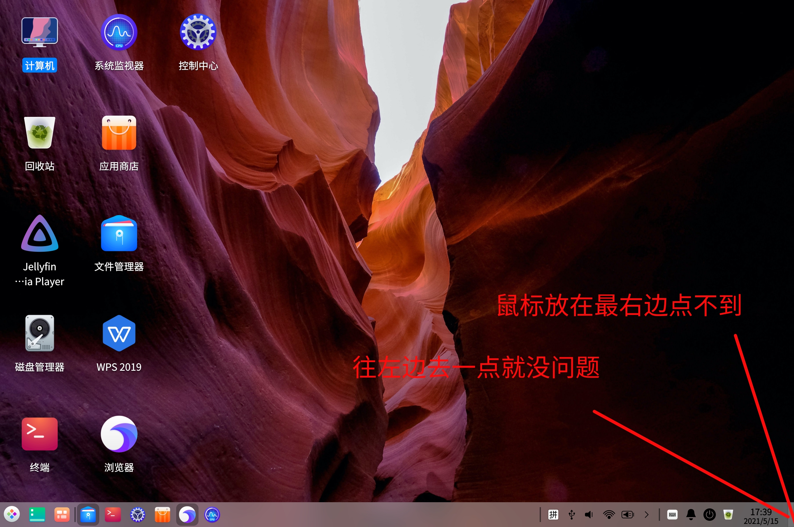 建议显示桌面的按钮再大一点,不然鼠标拉到最右下角就点击不到了,和WIN10操作有区别