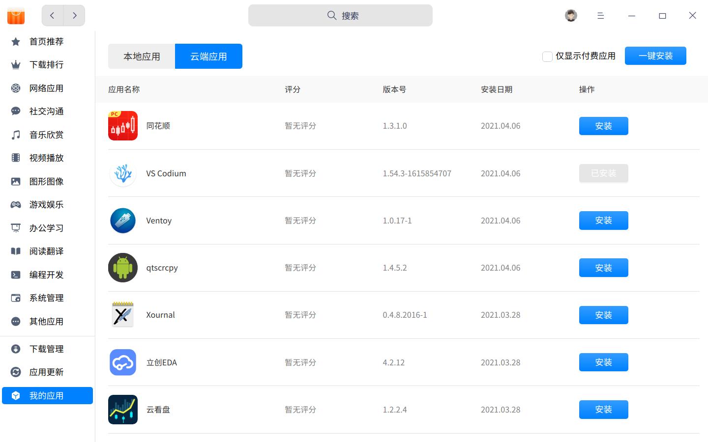 应用商店有之前的下载记录