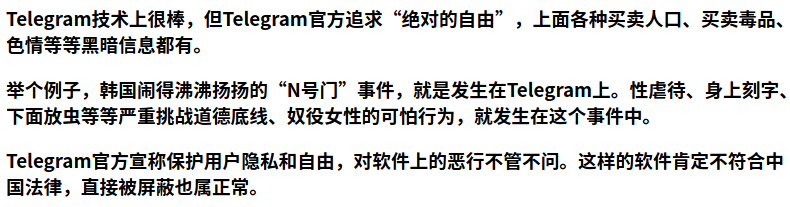 Telegram是跨平台的即时通信软件,其客户端是自由及开放源代码软件,但服务器是专有软件。用户可以相互交换加密与自毁消息,发送照片、影片等所有类型文件。官方提供手机版(Android、iOS、Windows Phone)、桌面版(Windows、macOS、Linux)和网页版等多种平台客户端;同时官方开放应用程序接口(API),因此拥有许多第三方的客户端可供选择,其中多款内置中文。