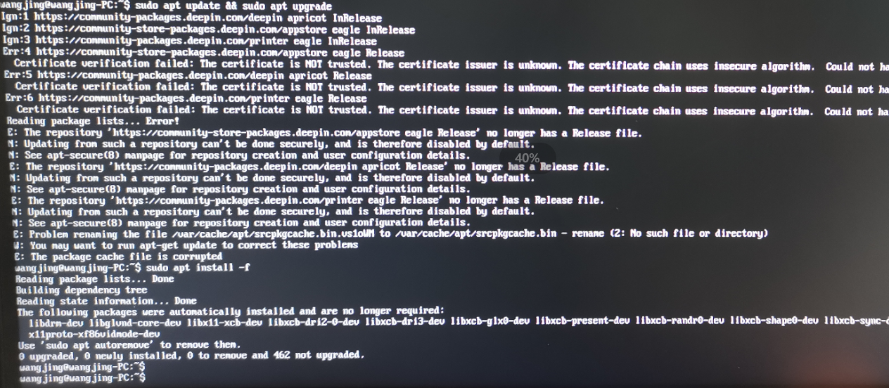 我看到一些错误,不晓得是不是和我断网有关系,我的网线是无法访问深度的一些网络的,我等一下把错误发出来