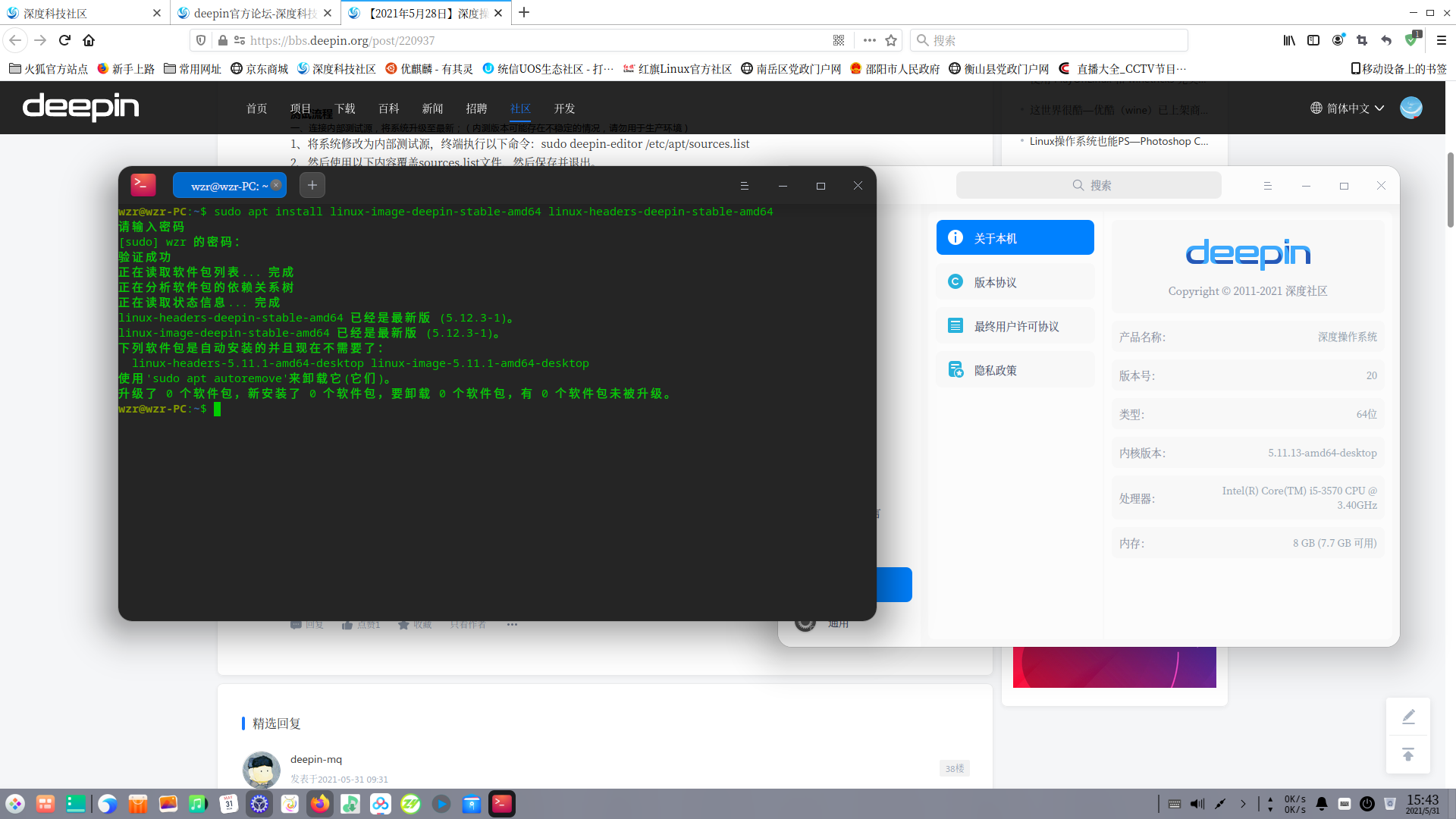 今天收到推送并更新后,试着安装新内核,怎么提示新内核是安装好了的。然而在控制中心里显示的还5.11.13的内核。