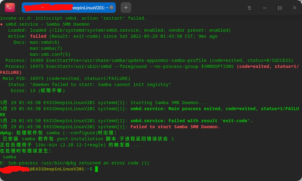 最近升级到DeepinV20.02.1后,原来的笔记本自带无线网卡无法识别,原来的V20.1版本能正常识别,另外应用商店安装第三方应用或者手动dpkg命令安装deb包出现如下smba问题,请教社区大牛如何解决。