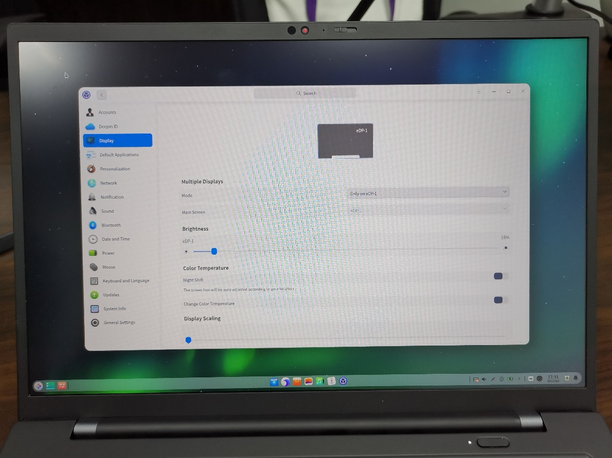 Deepin 20,Thinkpad x1 2021,拔掉外接HDMI外接显示器后屏幕只显示上面一条,下部黑屏,但是鼠标可以整屏幕移动。下面跟帖是拍到的照片。