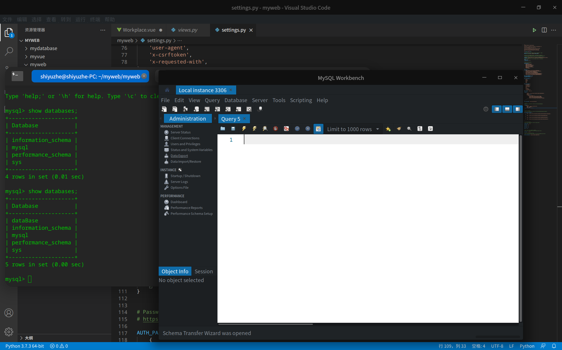 终端显示有数据库,为啥mysql workbeach里不显示啊,确定连上了,用mysql workbeach创建数据库终端里也能看到,mysql workbeach里就是没有,求大神解答