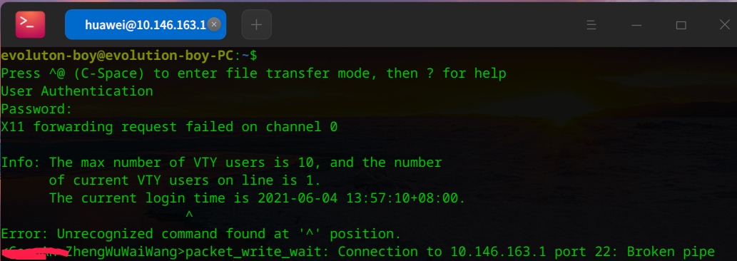 问题描述(也可能是自己不会用):通过ssh连接华为交换机,直接从终端可以正常登录,但通过终端里面的“远程管理”无法登录
