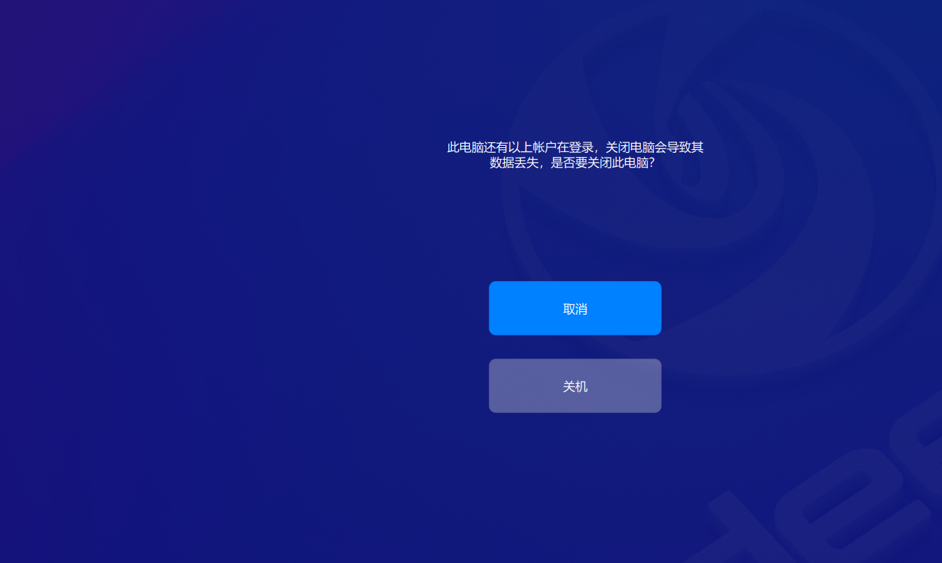 3. 添加了点击电源操作的一些提示信息。有程序运行的情况下,貌似不给操作,只有先点击取消,然后结束程序运行才可以操作