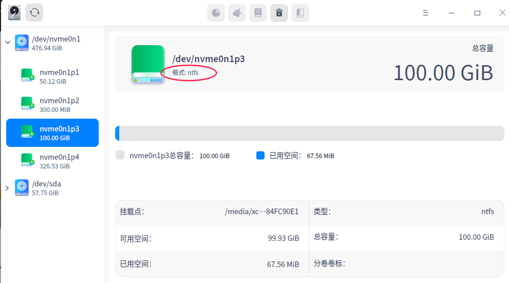 1.2/我已在deepin下创建了ntfs格式的分区。