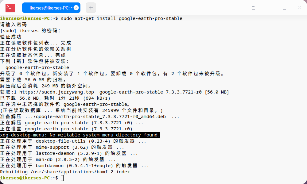 从星火商店安装了谷歌地球后,在启动器里找不到快捷方式