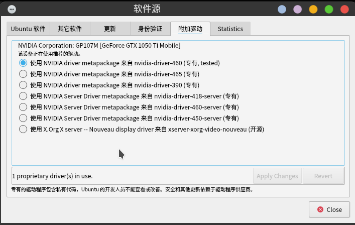 1)显卡驱动管理器提供多个显卡驱动版本,比如说针对英伟达驱动,提供340(针对老显卡), 460(最新)