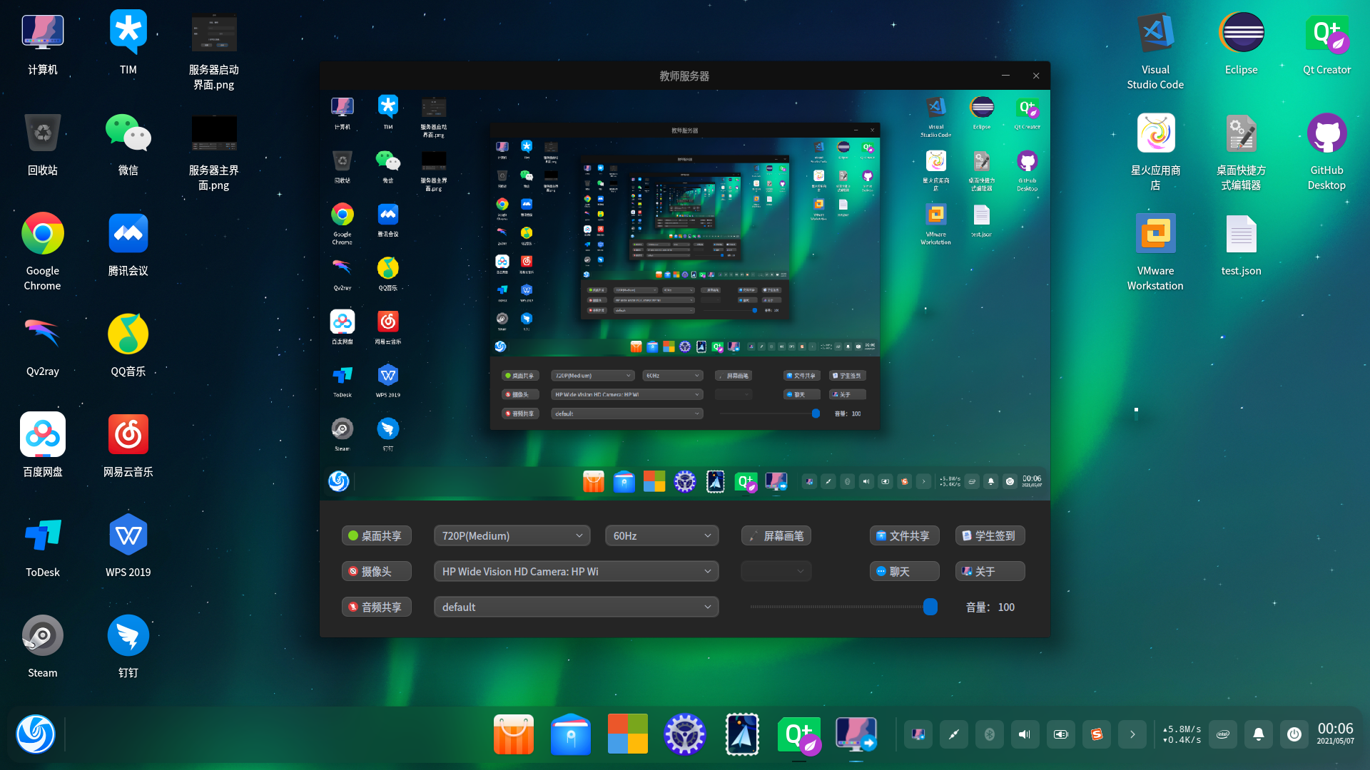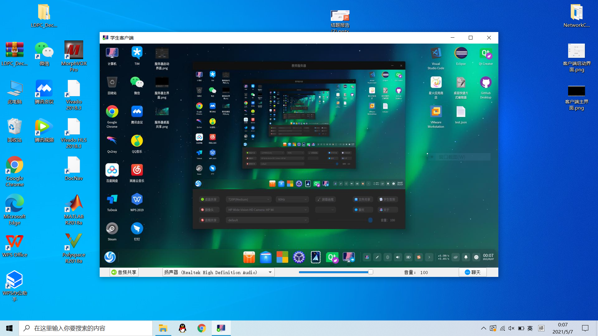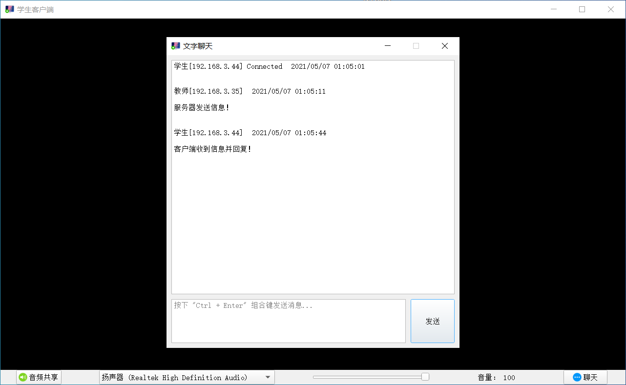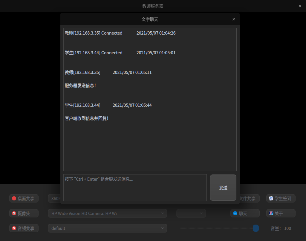 基于 UDP 组播实现了基本的多媒体传输功能,包括摄像头、桌面共享,语音、立体声混音设备等数据传输
