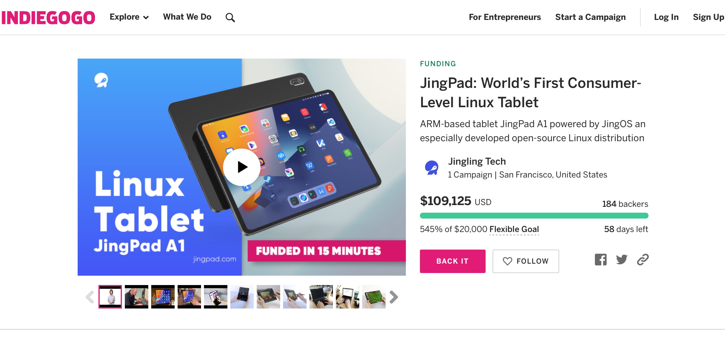众筹网址:https://www.indiegogo.com/projects/jingpad-world-s-first-consumer-level-linux-tablet#/updates/all