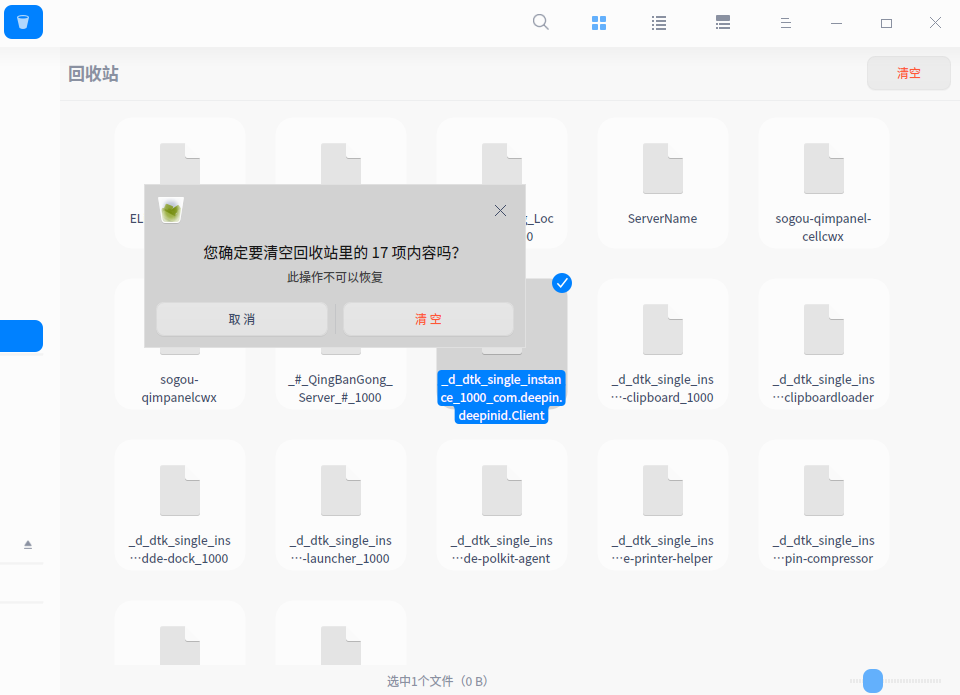 有些比如wine下面的文件删除到回收站之后是删除不了,我是直接到回收站目录用管理员权限打开删除!