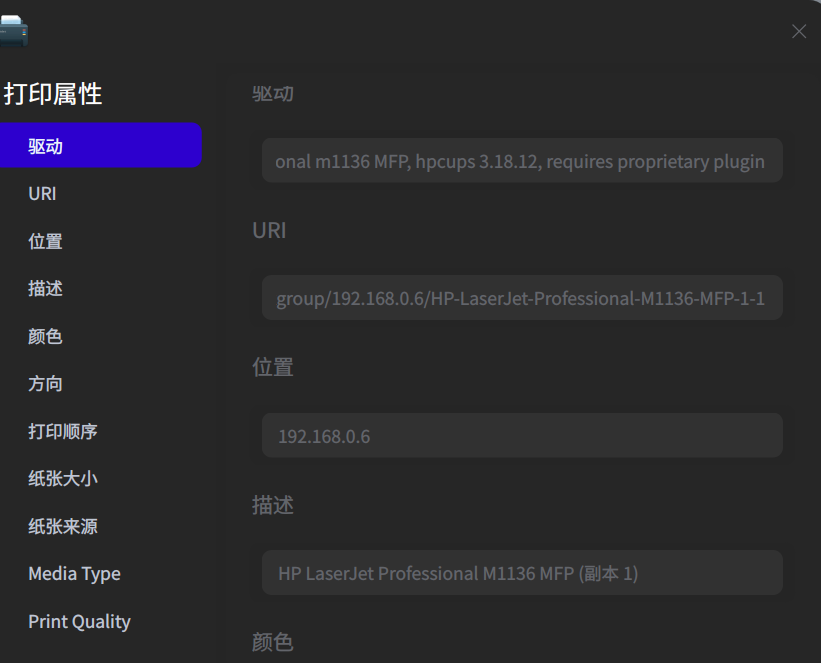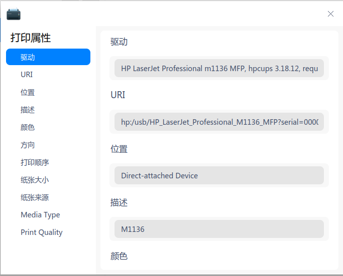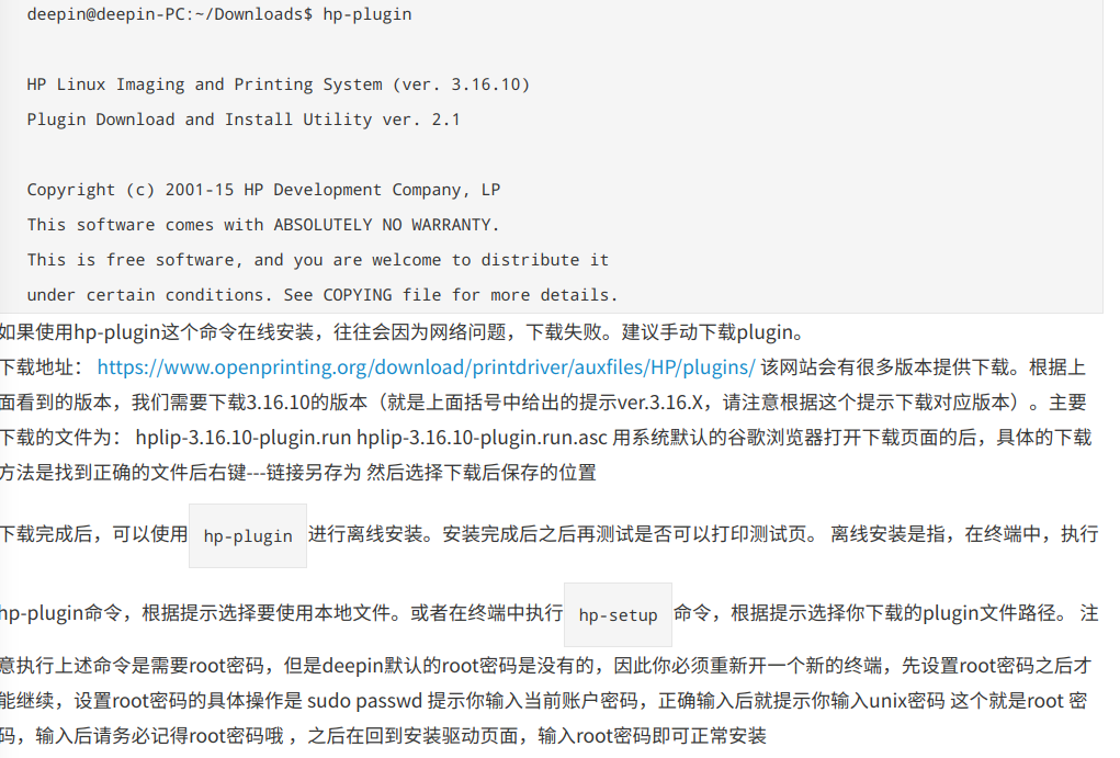 我用的同款打印机,是直连的,打印、扫描一切正常呀,系统自动识别安装的驱动。在linuxmint系统中采用hp-plugin手动安装了那两个文件后,也正常使用。