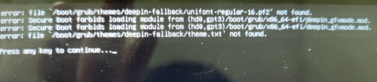 关闭安全启动后,第一个和第四个还是会报错,开机后一直卡死在deepin界面