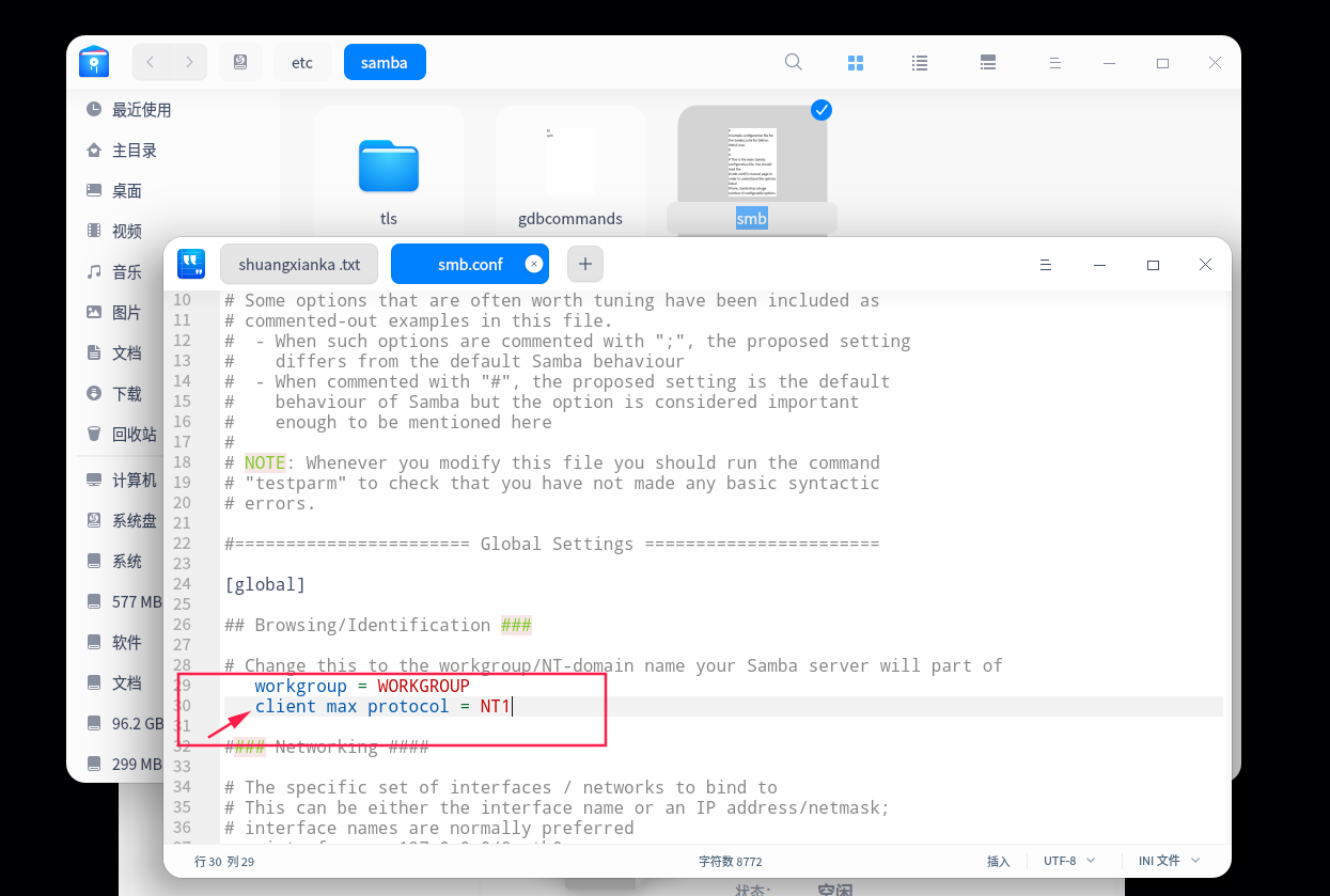 我这两台打印机,更新系统后另一台通过WINDOWS电脑共享的打印机也不能用了,后来在smb.conf添加lclient max protocol=NT1后再通过IP查找安装后可以使用了。