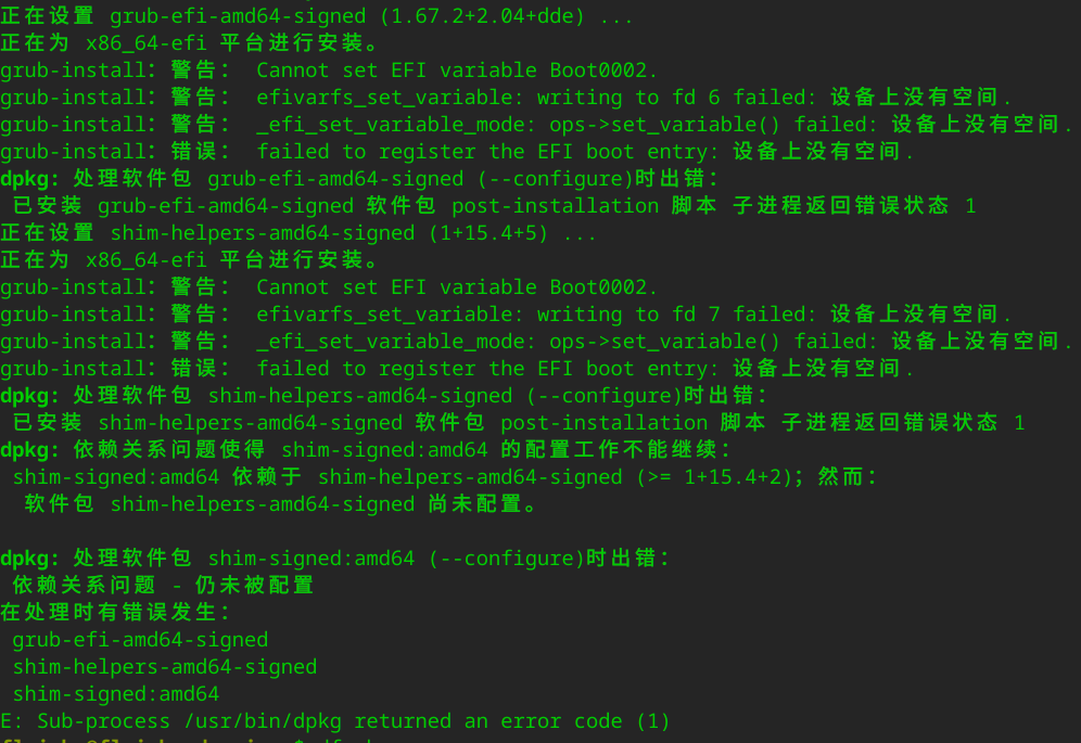 总不至于是 nvram 啥的满了导致没办法把安全启动项写进 UEFI 吧......