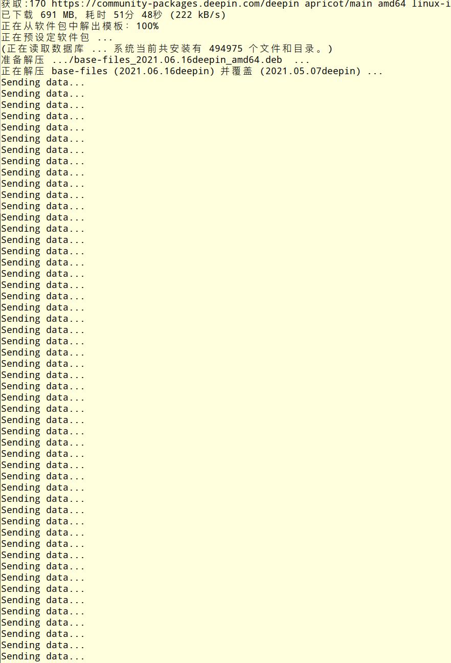 就这样不停的Sending data...但是一个软件包都不安装,等了很久不知道它想干嘛
