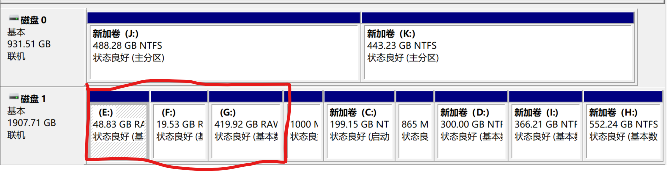 如下图,好像第一个(e盘)是系统分区,g盘是数据分区,具体忘了,我尝试过更改盘号和分区号,没有反应~~