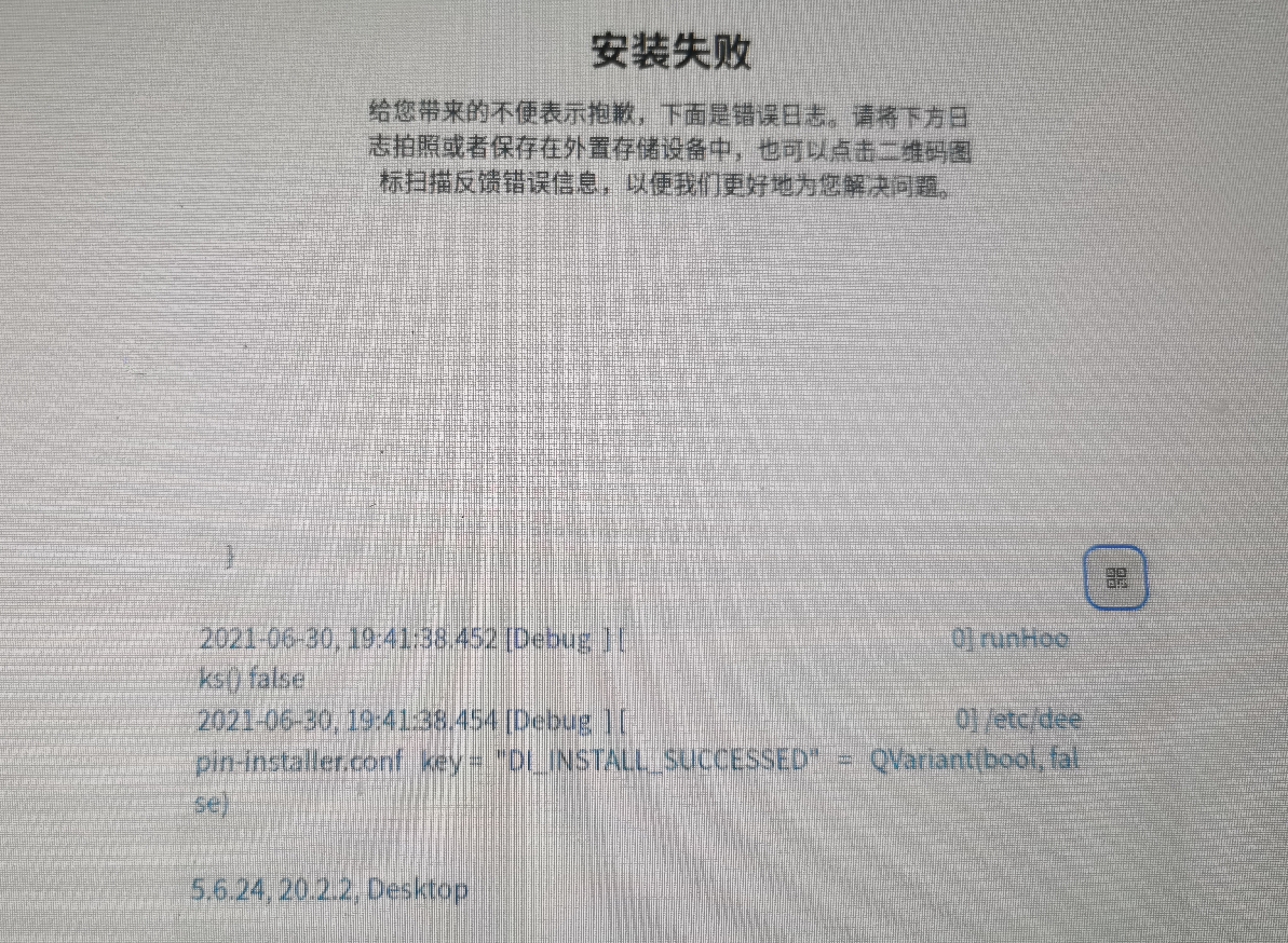2021-06-30, 20:02:42.237 [Debug ] [ 0] /etc/deepin-installer.conf key = "install_failed_qr_display_switch" = QVariant(QString, "true")