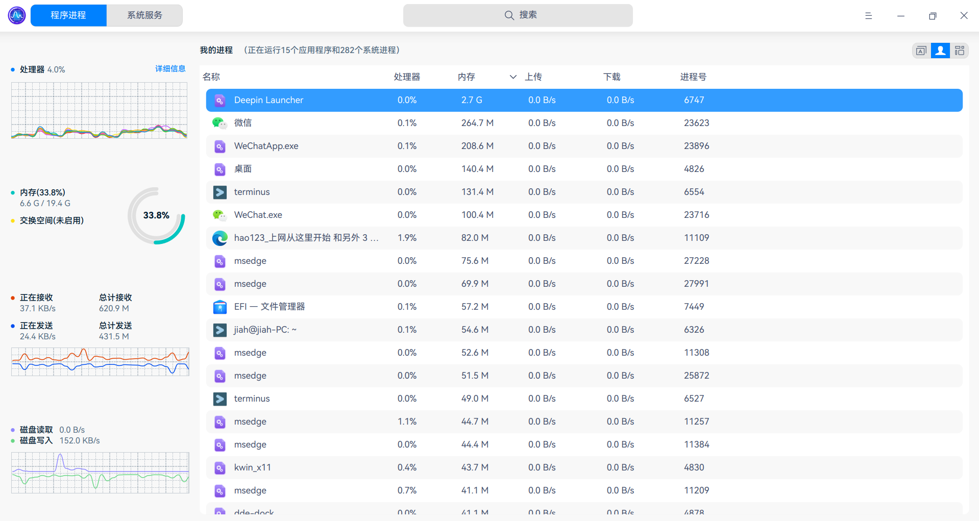 平时就是写写代码,升级之前没这个问题,刚才又重新试了下,开机后只打开系统监视器,然后看着deepin launcher占用内存在不到5分钟内从80M涨到快400M
