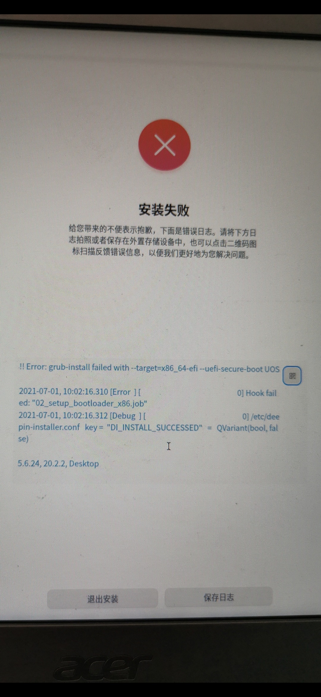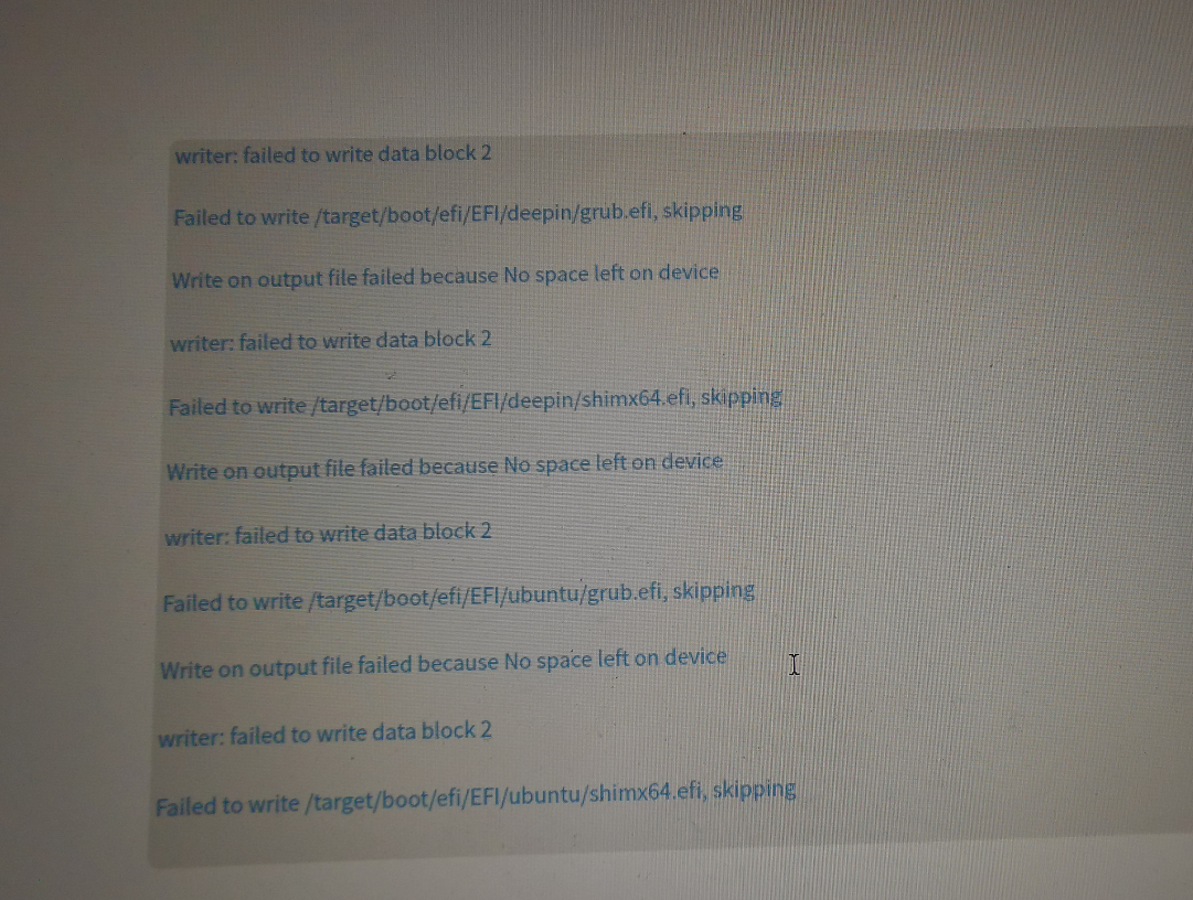u盘制作启动器,也进入了安装界面,但是点及安装之后一直卡在百分之五,磁盘也分区了,格式也格式化成EXT4,但安装失败报告提示未能写入文件,请问各位大神,如何才能解决这个问题。