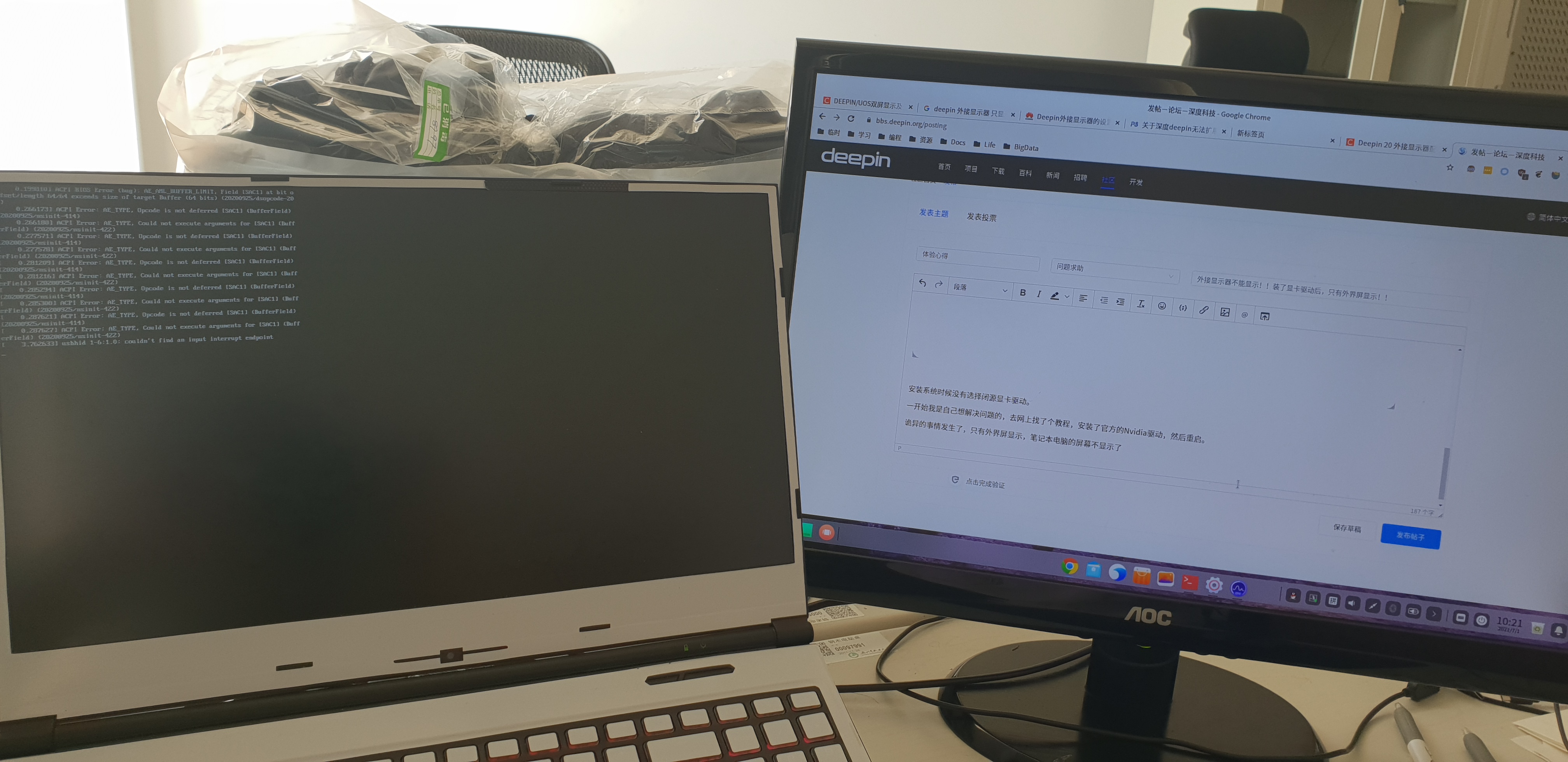 我之前装过的Ubuntu,Fedora在安装界面就可以外接显示器,这Deepin怎么了?