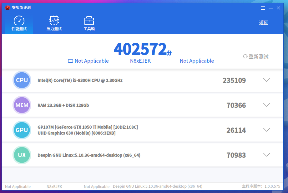 哇,我的笔记本跑分高达40万分诶! 深度商店现在已上线该软件。
