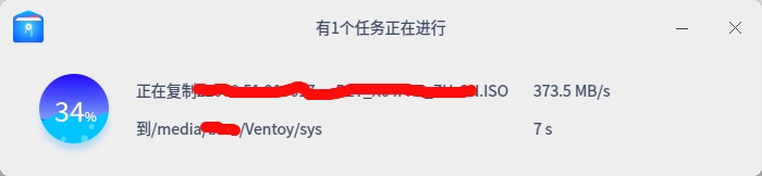 这个是Ventoy制作的启动盘;实际上应没有这个写入速度(写完后,U盘弹不出来,而且写入的文件有问题,不能启动),在另一个系统中复制的速度为33MB上下;